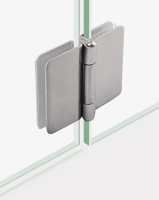 Glastürscharniere für Glas an Glastür. Die rückschwingende Doppelscharniere sind für Glas-Glas-Montagen geeignet.