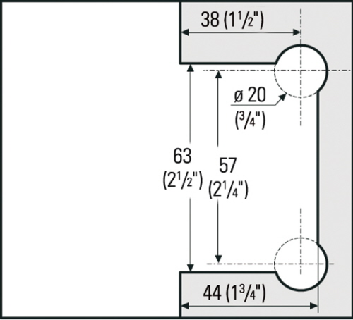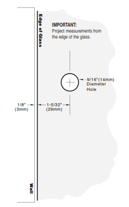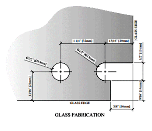 Zapfenscharniere für Glastüren bis 8 mm Glas. Für die Montage der Zapfenscharniere sind ein Loch und ein Ausschnitt im Glas erforderlich.