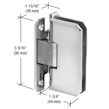 Türbänder für Glas an Glastüren. Zur Montage eines Türflügels an einem feststehenden Seitenteil 90°, Türflügel je 90° drehbar.