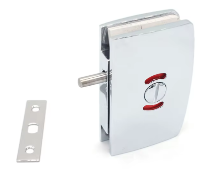 Das WC-Glastürschloss ist geeignet für Schwingtüren und besonders für Duschtüren. Das Türschloss sorgt auf attraktive und praktische Art für Sicherheit und Privatsphäre bei Glastüren von 7,9 mm bis 12,7 mm Glas. Dieses WC-Glastürschloss kann an Glas zu Wand benutzt werden. Eine Drehung des Drehknaufs auf der Innenseite des Schlosses ändert die Farbe der Außenanzeige. Eine Flachprofilschraube auf der Außenfläche ermöglicht den Zugang im Notfall. Das WC-Glastürschloss wird mit einem Schließblech zur Wandmontage geliefert.